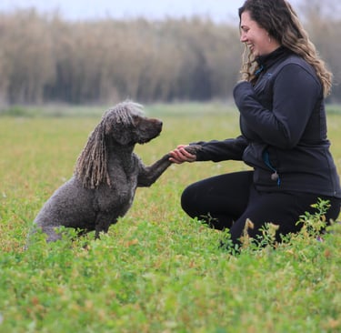 Soy Yolanda Castelreanas. Llevo más de 12 años trabajando como adiestradora y educadora canina, con formación profesional reglada, y toda mi vida conviviendo con perros.